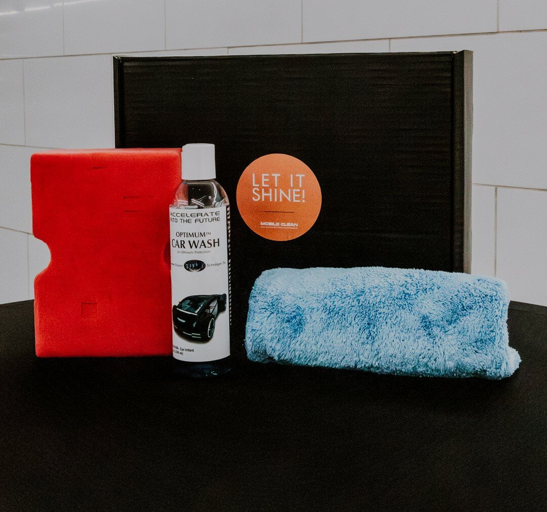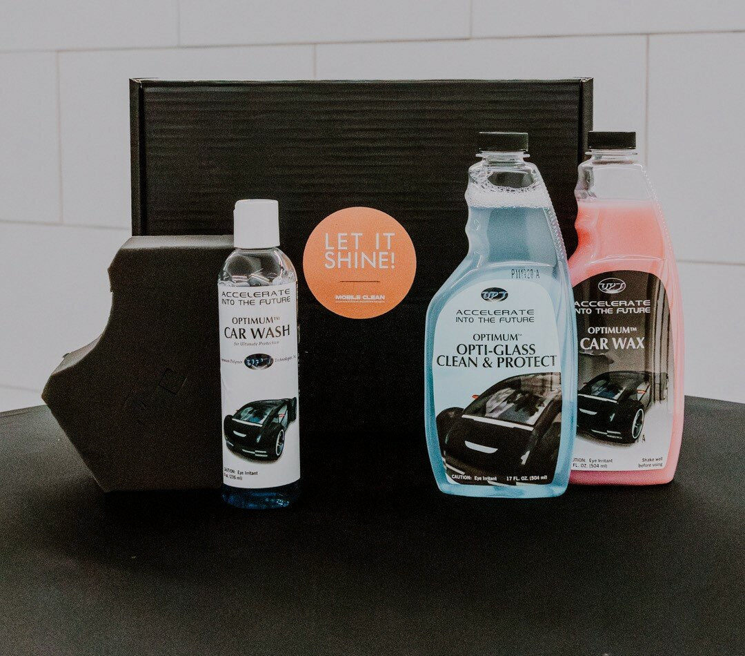 Car wash: autoshampooUltra Black Sponge: sponsOpti-Glass Clean & Protect: ruitenreinigerCar Wax: vloeibare wax